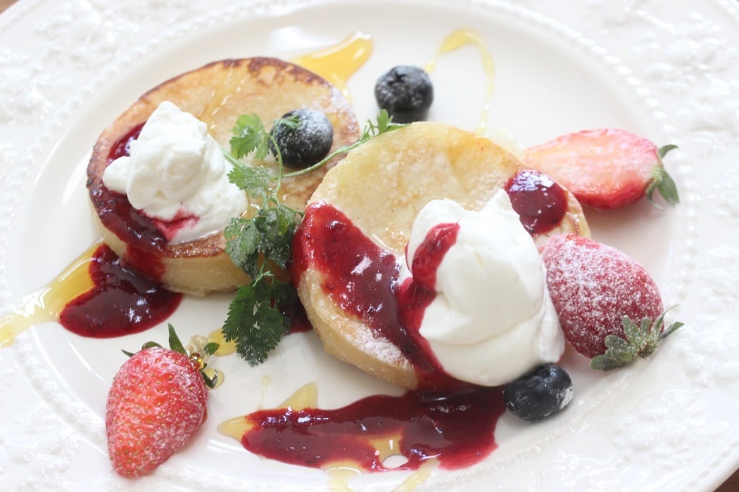 スイーツレッスンでは、復活祭にちなんだパンケーキやイチゴを使った